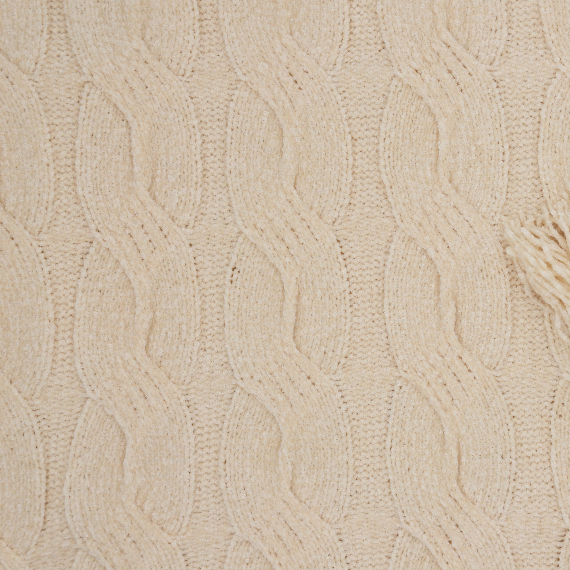 Frazada chenille en diseño clásico de trenzas con borlas en las esquinas.