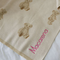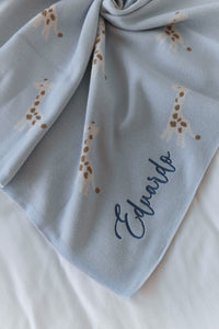 Puedes agregar el nombre de tu bebé para bordarlo sobre la frazada.