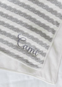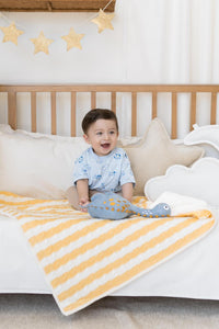 Puedes agregar el nombre de tu bebé para bordarlo sobre la frazada.