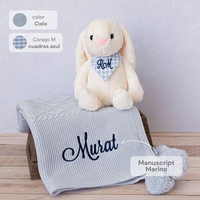 Incluye:Cobija Motas + Personalizado + Conejo M + Pañuelo Personalizado